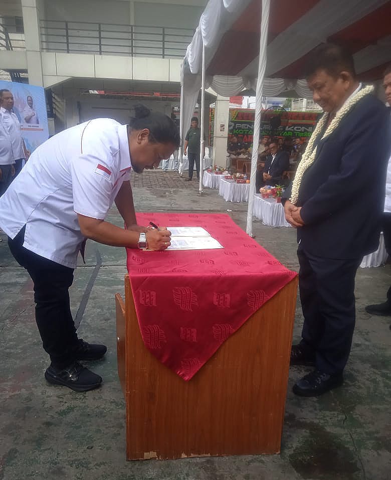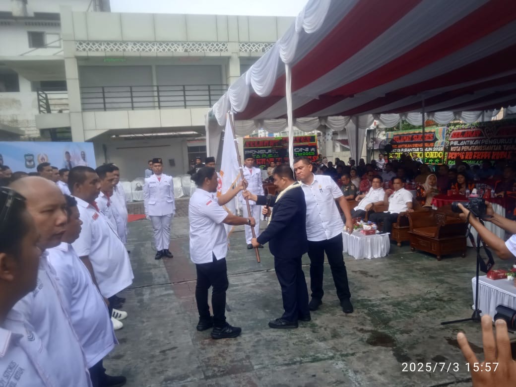 Pematangsiantar-tuntasnews.net – Pelantikan pengurus Komite Olahraga Nasional Indonesia (KONI) Kota Pematangsiantar berlangsung dengan cara yang sedikit berbeda. Bertempat di lapangan parkir Pariwisata Siantar, acara tersebut menampilkan semangat baru yang dipenuhi oleh wajah-wajah muda, Kamis (03/7/2025) pukul 15.00 Wib