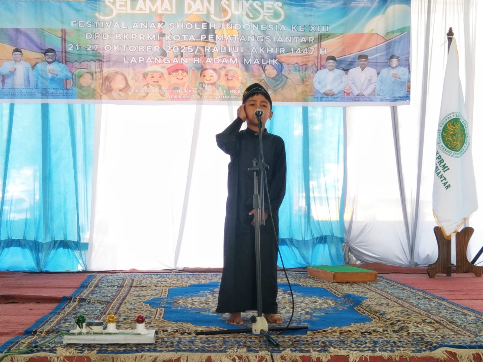 Pematangsiantar-tuntasnews.net – Suara lantang dan merdu Azan menggema di Kota Pematangsiantar, Kamis (23/10/2025). Memasuki hari ketiga pelaksanaan Festival Anak Saleh yang diprakarsai oleh DPD BKPRMI Kota Pematangsiantar, ratusan peserta unjuk kemampuan dalam lomba Azan tingkat sekolah dasar dan menengah pertama.