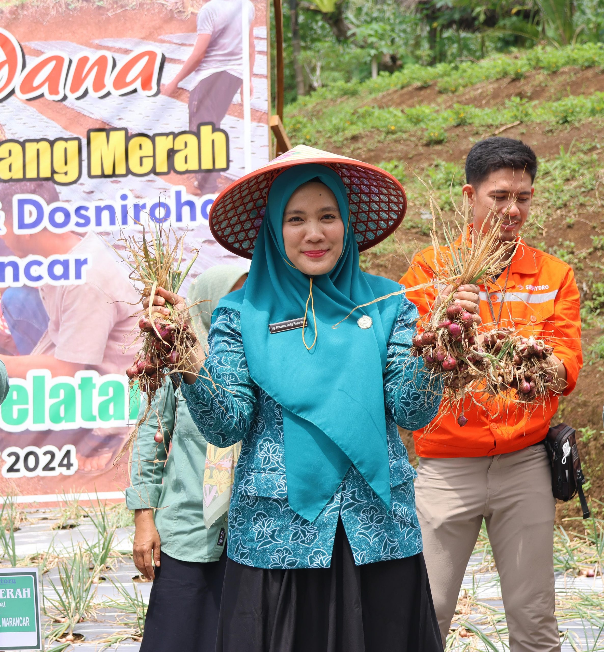 TAPANULI SELATAN – Bupati Tapanuli Selatan (Tapsel) Dolly Pasaribu bersama Ketua Tim Penggerak (TP) Pemberdayaan Kesejahteraan Keluarga (PKK) Tapsel Ny. Rosalina Dolly Pasaribu melakukan panen perdana bawang merah bersama kelompok tani Desa Simaninggir, Kecamatan Marancar pada Rabu (7/2).
