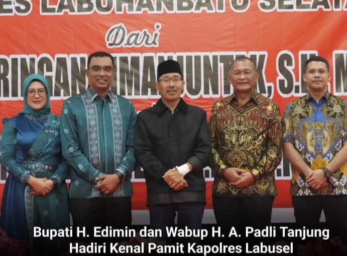 Labuhanbatu Selatan,TuntasNews – Bupati Labuhanbatu Selatan H. Edimin bersama Wabup H. Ahmad Padli Tanjung, S.Ag hadiri acara Kenal Pamit Kapolres Labusel dari AKBP Maringan Simanjuntak, S.H., M.H., kepada AKBP Arfin Fachreza, S.H., S.I.K M.H., yang berlangsung di Convention Hall Grand Suma Hotel, pada Rabu (9/10/2024) malam