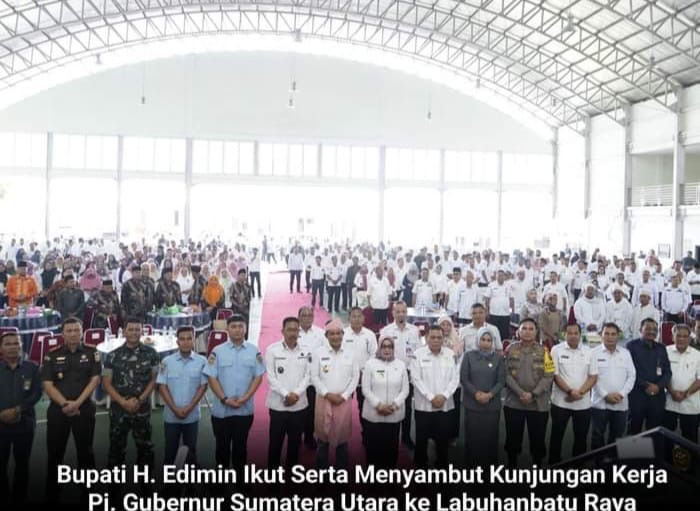 Labuhanbatu Selatan – Bupati Labuhanbatu Selatan H. Edimin menyambut kunjungan kerja Pj Gubernur Sumatera Utara Hassanudin di Labuhanbatu Raya, Gedung serba guna, Rumah Dinas Bupati Labuhanbatu, Rabu (21/02/2024).