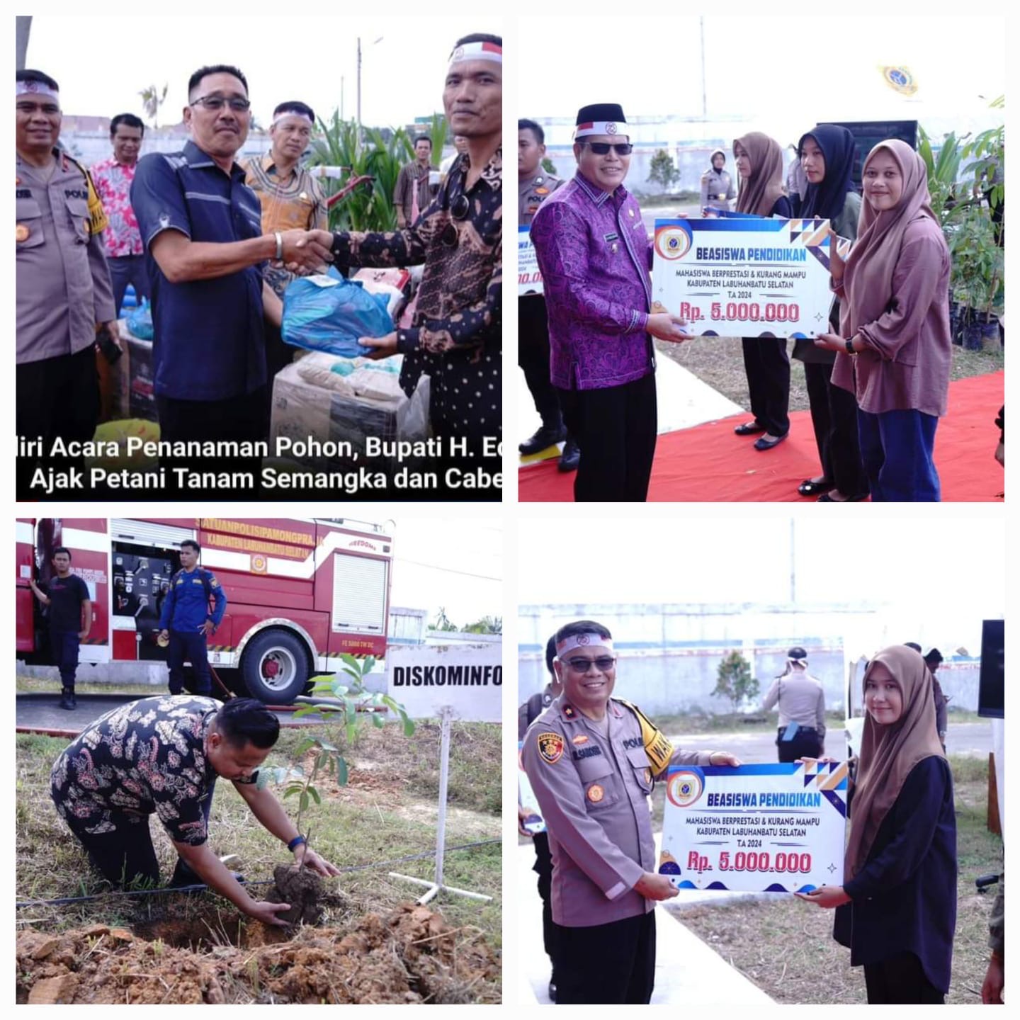 Labuhanbatu Selatan,Tuntasnews – Bupati Labuhanbatu Selatan (Labusel) H. Edimin hadiri Acara Penanaman Pohon, Ketahanan Pangan dan Pemberian Beasiswa dalam Rangka Hari Bhayangkara Ke-78 di halaman perkantoran Bupati Labusel, Kamis (27/6/2024).