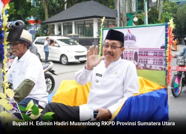 Labuhanbatu Selatan – Bupati Labusel menghadiri Musrenbang RKPD Provinsi Sumatera Utara tahun 2025, Bupati Labuhanbatu Selatan (Labusel) H. Edimin konvoi menaiki Becak bersama PJ Gubernur Sumatera Utara Hasanuddin, dan seluruh Bupati/Walikota se-Provinsi Sumatera Utara, Jumat (8/3/2024).