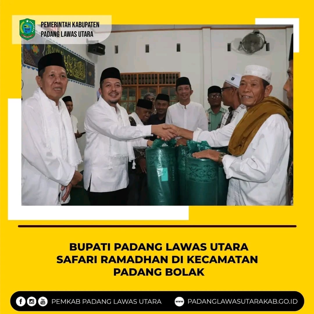 Safari Ramadhan yang digelar di Masjid Nurul Iman Desa Hajoran tersebut turut dihadiri Wakil Bupati Padang Lawas Utara H. Basri Harahap, Sekretaris Daerah Patuan Rahmat Syukur P Hasibuan, S.STP., MM., Anggota DPRD Kabupaten Padang Lawas Utara Gusti Putra Hajoran Siregar, SE., Camat Padang Bolak Awaluddin Jamin Harahap, Kepala Desa Hajoran, Kemenag Padang Lawas Utara, FKUI, MUI, DMI, BAZNAS dan undangan lainnya.
