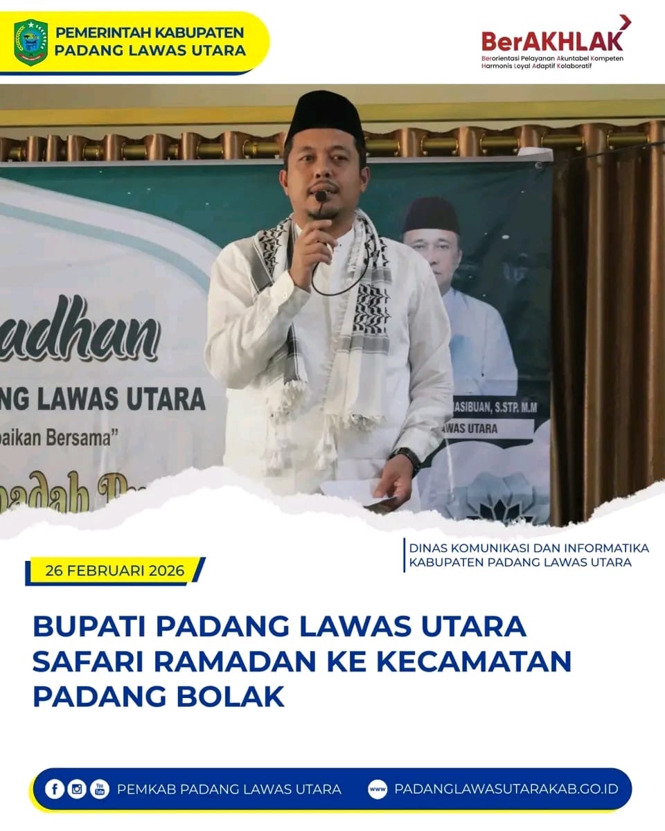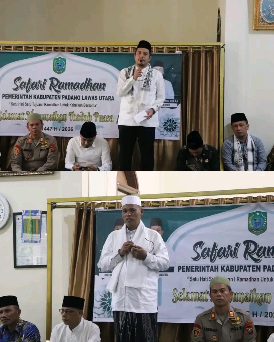 Bupati Padang Lawas Utara H. Reski Basyah Harahap, S.STP., M.Si, melaksanakan kegiatan Safari Ramadhan di Masjid Al-Ansor, Desa Purba Sinomba, Kecamatan Padang Bolak, Kamis (26/2/2026).