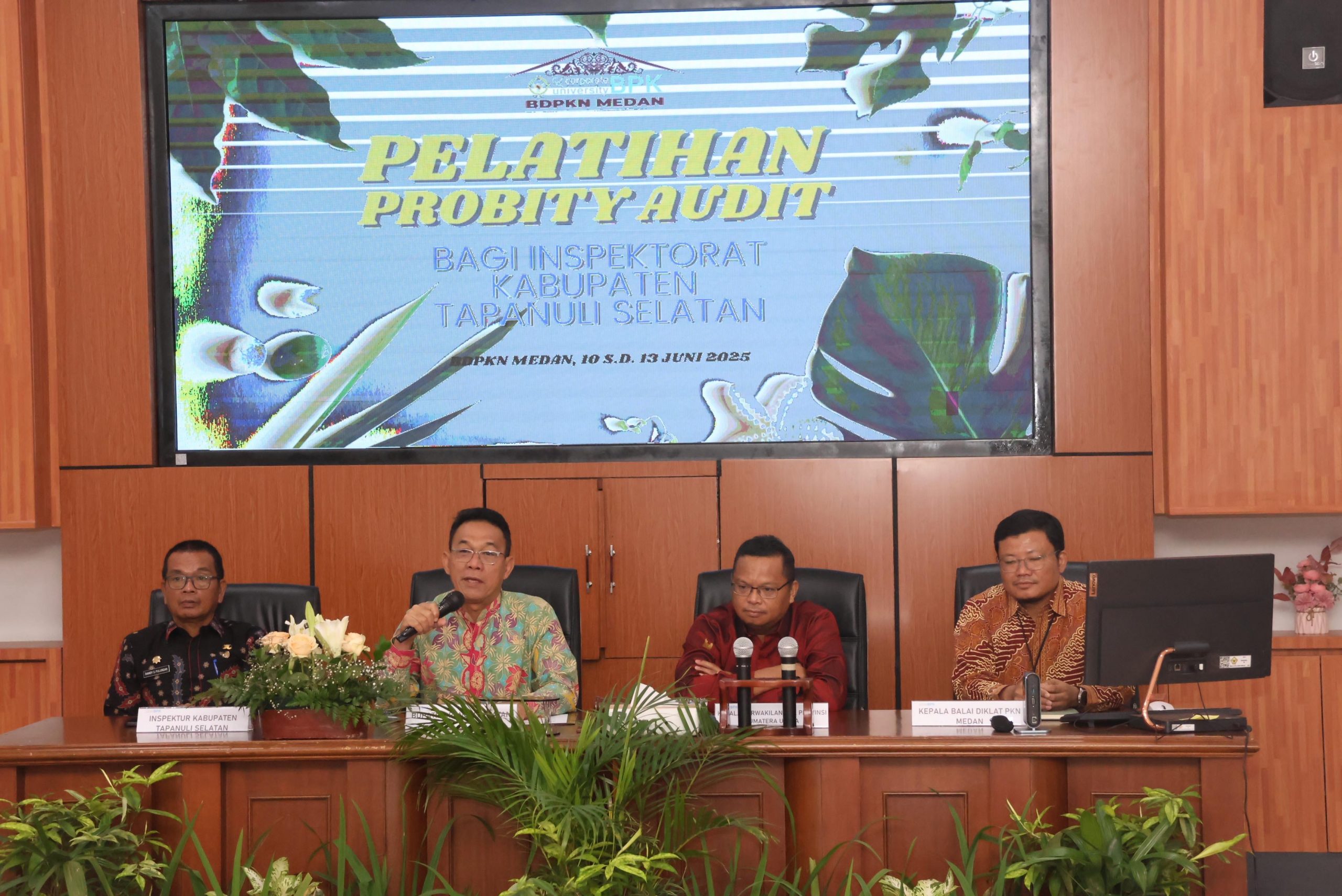Medan – Tuntasnews – Bupati Tapanuli Selatan (Tapsel), H. Gus Irawan Pasaribu, mengapresiasi Badan Pendidikan dan Pelatihan Pemeriksaan Keuangan Negara (Badiklat PKN) Medan atas kesempatan yang diberikan kepada staf Inspektorat Kabupaten Tapsel untuk mengikuti pelatihan Probity Audit. Pelatihan ini diadakan di Kantor Balai Diklat PKN Medan pada Selasa (10/6/2025), dengan tujuan untuk meningkatkan kapasitas sistem pengawasan internal pemerintahan daerah.