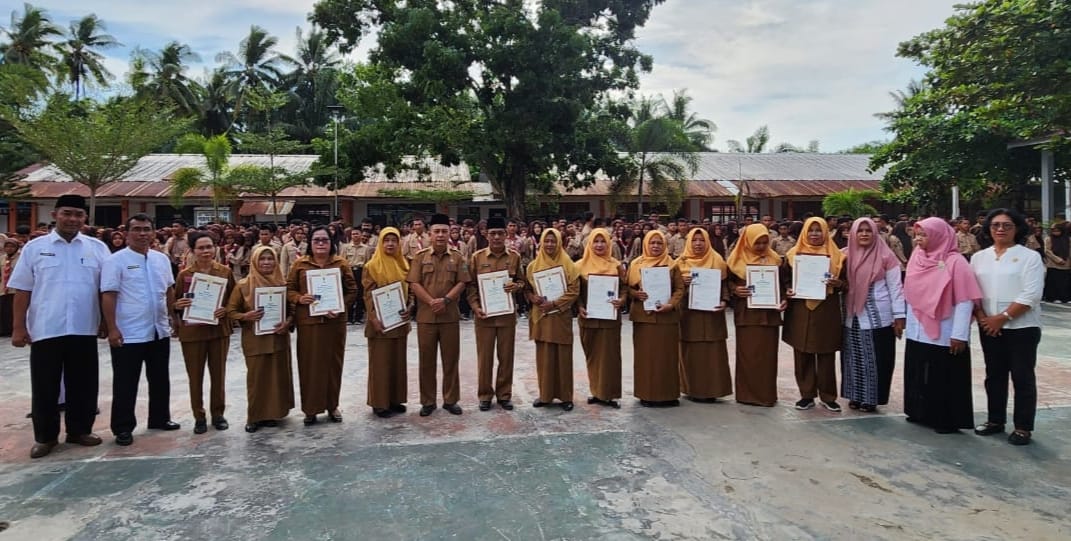 Gunung Tua – Dinas Pendidikan Provinsi Sumatera Utara melalui Cabang Dinas Pendidikan Wilayah XII menggelar Upacara Penyerahan Piagam Penghargaan Satyalancana Karya Satya X, XX dan XXX Tahun kepada 14 guru Pegawai Negeri Sipil (PNS) SMA / SMK.