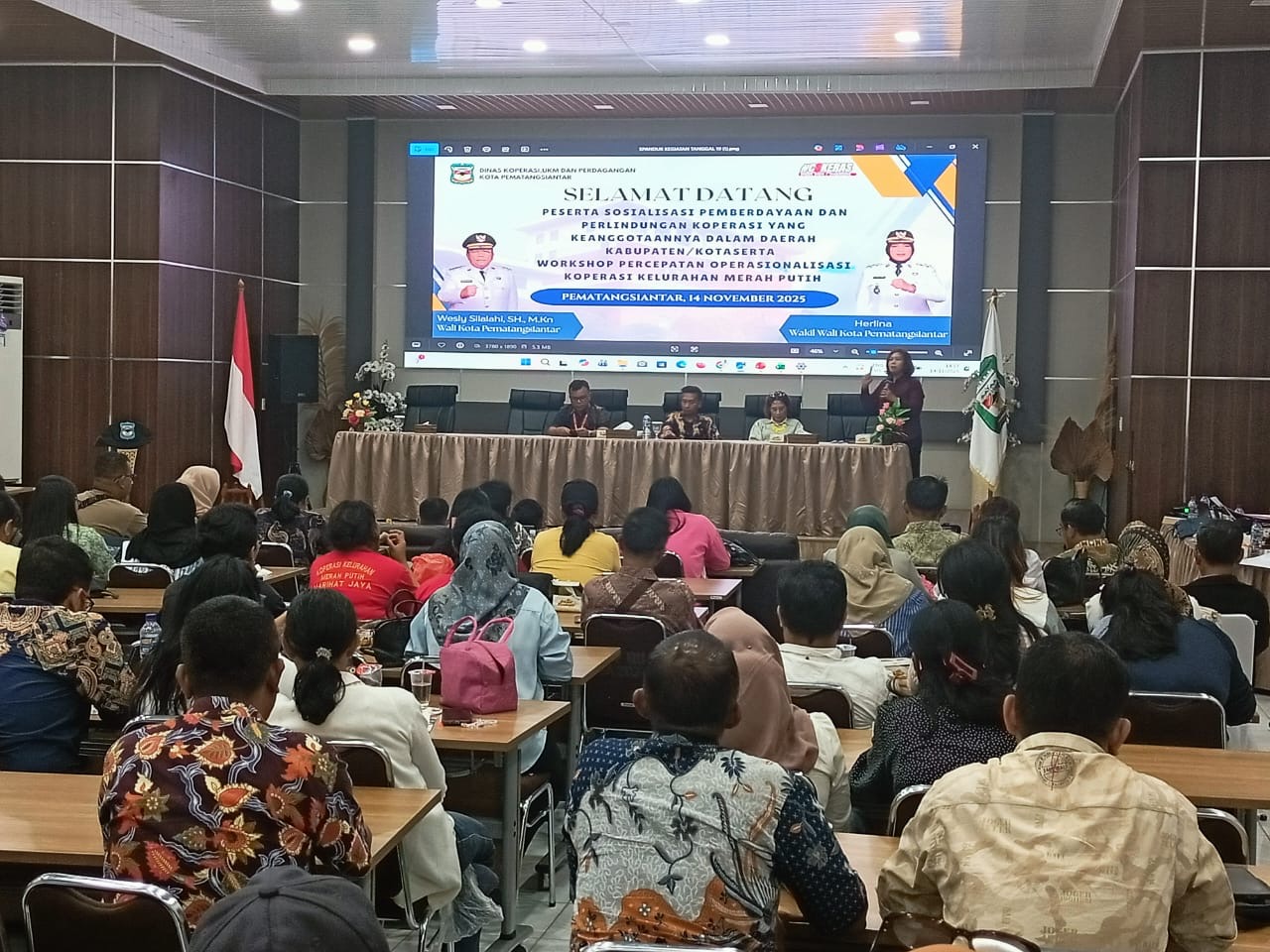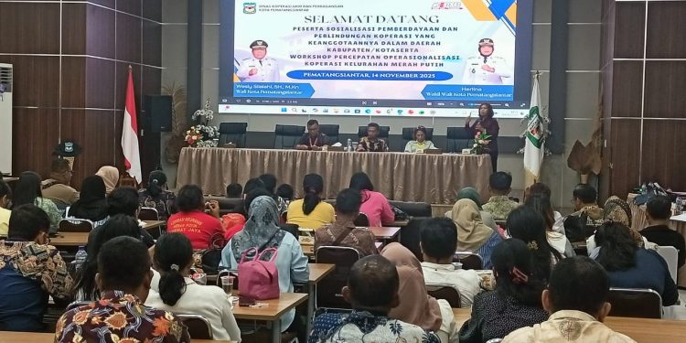 Pematangsiantar-tuntasnews.net – Dinas Koperasi UKM dan Perdagangan Kota Pematangsiantar melaksanakan workshop percepatan operasionalisasi sekaligus sosialisasi pemberdayaan dan perlindungan Koperasi Kelurahan Merah Putih (KKMP). Kegiatan berlangsung di Gedung Serbaguna Pemko Pematangsiantar, Jumat (14/11/2025).