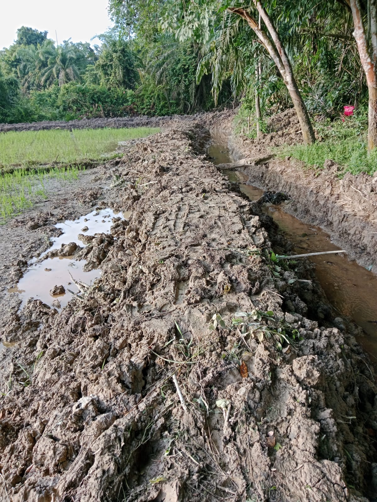 Tak hanya itu sambung Husin, Tanah hasil Galian Parit juga dibuang begitu saja sehingga menimbun sisi Lahan Pertanian yang diarealnya ditanami Padi, sudah tentu merusak Tanaman dan memperparah kerugian  Materi,
