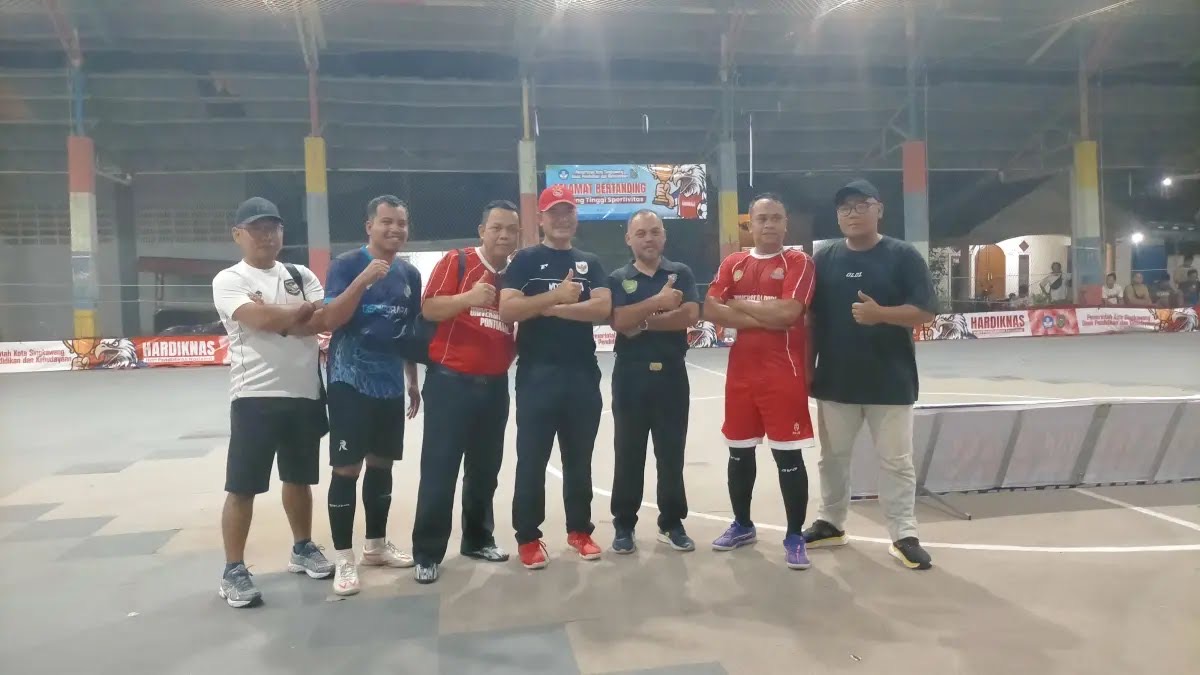“Hardiknas bukan cuma urusan sekolah. Kita ajak semua stakeholder, termasuk BUMN seperti PLN, untuk bareng-bareng memajukan pendidikan. Lewat futsal, silaturahminya dapat, sehatnya juga dapat,” ujar Asmadi sambil menyalami Manager PLN UP3 Singkawang.