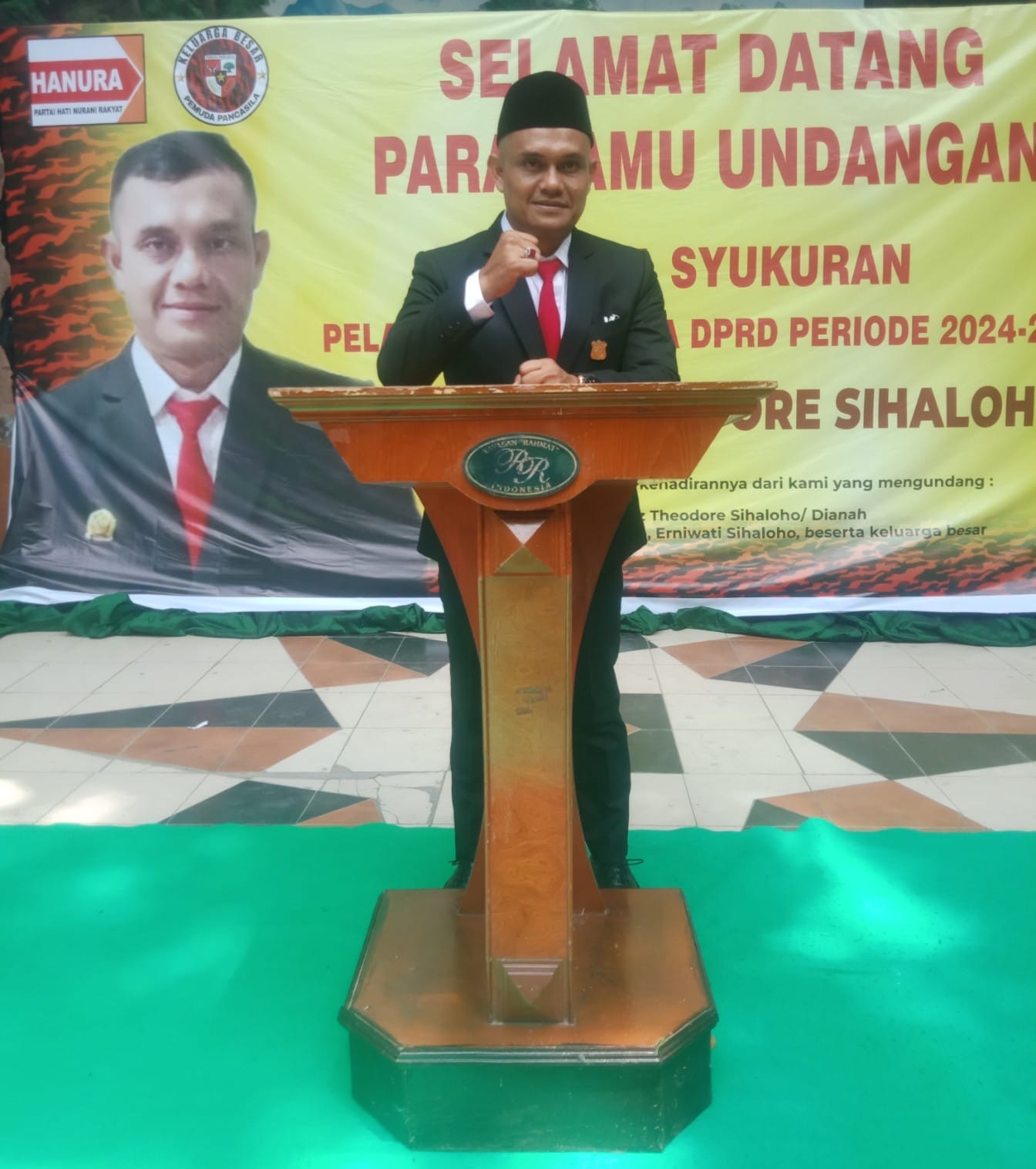 Ketua DPC Partai Hanura Ronald Darwin Tampubolon SH dalam kata sambutannya mengatakan “Selamat kepada Franz Theodore Sialoho sebagai anggota legislative terpilih dari partai Hanura periode 2024-2029, semoga amanah Dan mampu menjadi aspirasi buat masyarakat Kota Pematangsiantar, dan memohon dukungannya untuk mengikuti kompetisi Pilkada 2024-2029 menjadi wakil Walikota berpasangan dengan dr Susanti Dewayani Spd., “kata Ronald