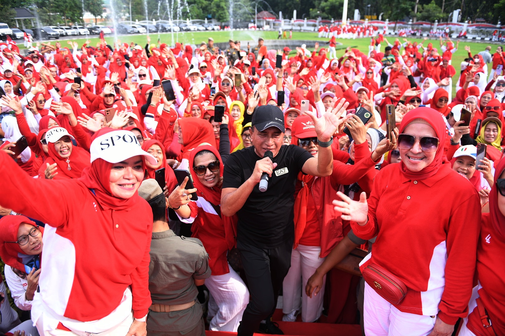 Medan – Meriahkan Hari Ulang Tahun (HUT) ke-78 Kemerdekaan Republik Indonesia (RI), ratusan pengusaha muslimah yang tergabung dalam Ikatan Pengusaha Muslimah Indonesia (IPEMI) Sumatera Utara (Sumut) melaksanakan senam sehat bersama Gubernur Sumatera Utara (Sumut) Edy Rahmayadi dan istrinya Nawal Lubis.