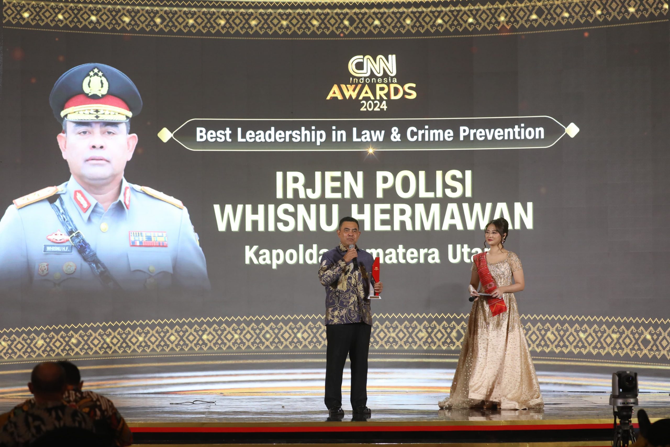 MEDAN,TuntasNews – Kapolda Sumatera Utara, Irjen Pol Whisnu Hermawan Februanto, menerima penghargaan dalam acara CNN Indonesia Awards 2024 dalam kategori ‘Best Leadership in Law & Crime Prevention’.