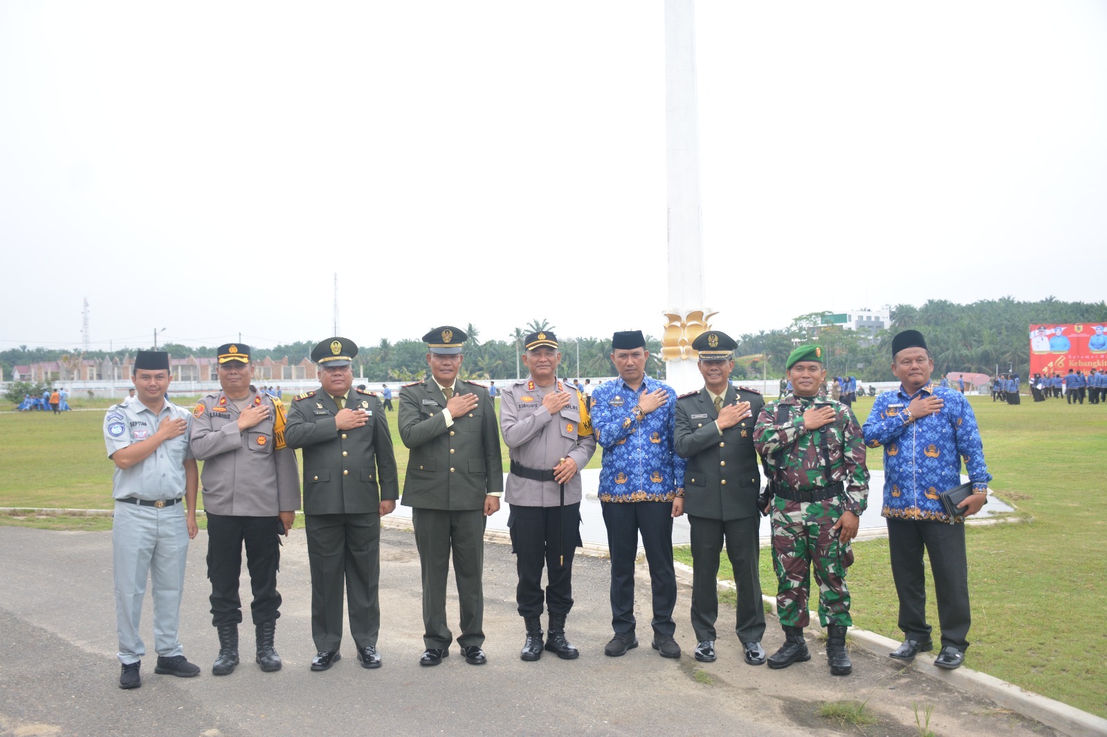 Hadir dalam upacara tersebut Kapolres Labuhanbatu Selatan AKBP Maringan Simanjuntak, S.H., M.H., Wakapolres Labuhanbatu Selatan KOMPOL Ramsen Samosir, S.H., M.H., Sekdakab Labuhanbatu Selatan H. Heri Wahyudi Marpaung, S.STP., M.AP., Kasubdenpom Cikampak KAPTEN CPM S Sembiring, Dandim 0209/LB diwakili oleh Danramil 11/Kotapinang MAYOR Inf Hendra Gunawan, S.H., dan para Danramil Se-Labuhanbatu Selatan, para Kapolsek Sejajaran Polres Labuhanbatu Selatan, Asisten dan Staff Ahli Bupati Labuhanbatu Selatan, PT Jasaraharja Perwakilan Kotapinang Septian Jonathan Siregar, Kakan Kemenag Labuhanbatu Selatan H.Awaludin Habibi Siregar, S.Ag., M.M., Ketua MUI Kabupaten Labuhanbatu Selatan H. Maratamin Harahap, para Ormas dan OKP Kabupaten Labuhanbatu Selatan, Tokoh Agama, Tokoh Masyarakat, Tokoh Adat Kabupaten Labuhanbatu Selatan, peserta upacara dari perwakilan sekolah dan instansi lainnya.