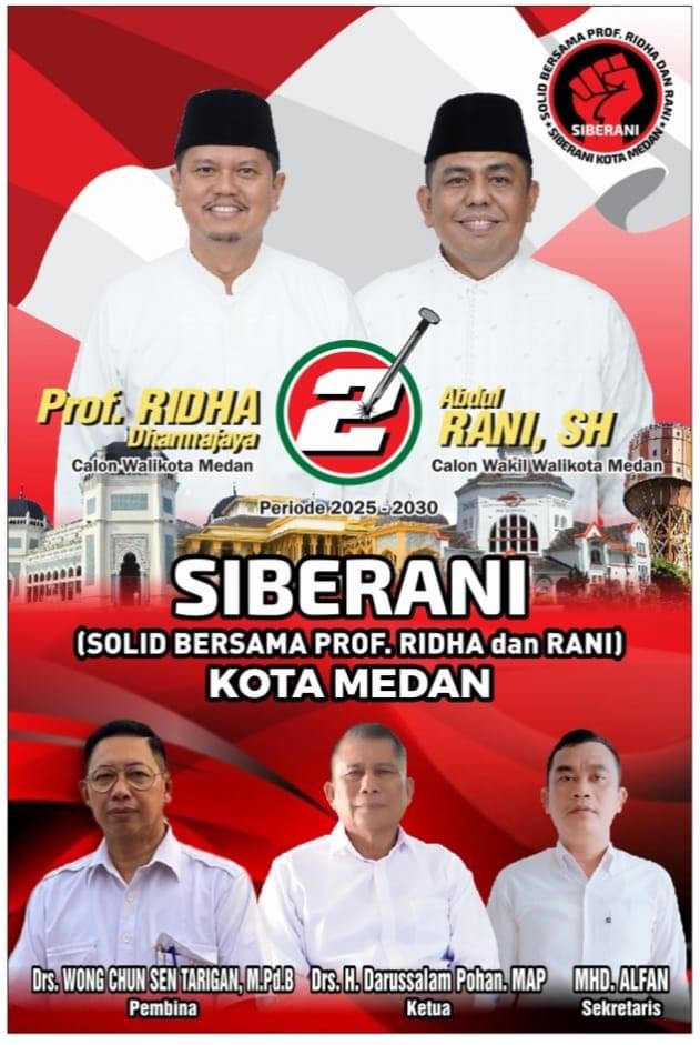 “SIBERANI sudah berkomitmen untuk menggalang dukungan sebanyak-banyaknya dari berbagai elemen masyarakat, karena kami yakin bahwa Prof. Ridha dan Abdul Rani memiliki kemampuan dan keinginan tulus untuk membawa perubahan positif bagi Kota Medan. Kami mengajak masyarakat untuk turut serta dalam mendukung mereka di Pilkada mendatang,” ujarnya.