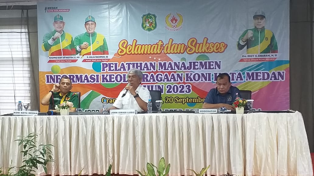 Medan – Komite Olahraga Nasional Indonesia (KONI) Kota Medan, sukses menggelar Pelatihan Manajemen Informasi terkait Keolahragaan yang berlangsung di Hotel Grand Kanaya jalan Darussalam Kota Medan Rabu (20/9/2023).