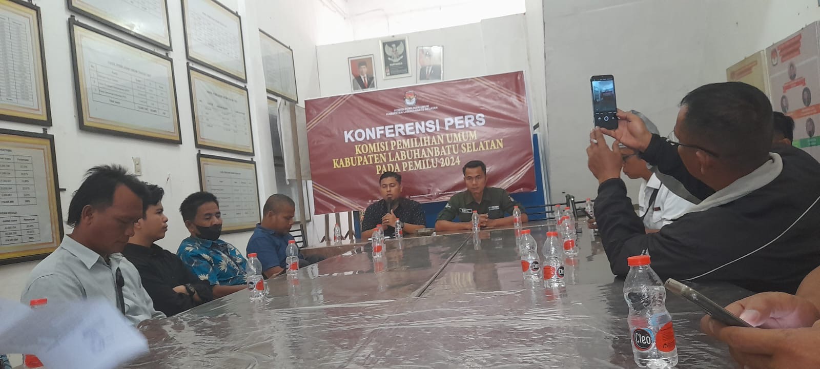 Labuhanbatu Selatan – Komisi Pemilihan Umum (KPU) Kabupaten Labuhanbatu Selatan menggelar konferensi pers pada hari Selasa, 27 Februari 2024, di Jalan Lintas Sumut Bedagai.