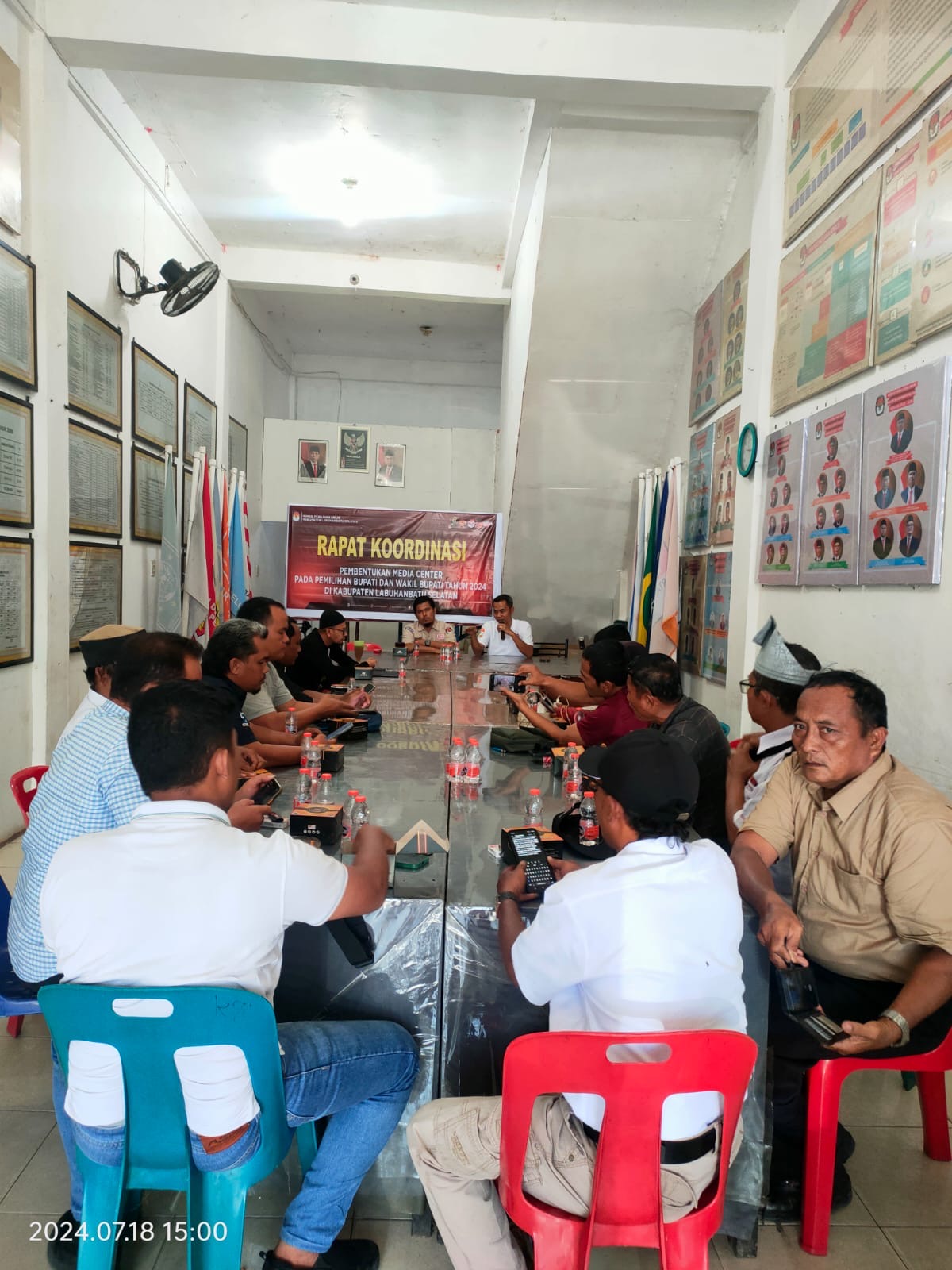 Labuhanbatu Selatan,Tuntas news – Komisi Pemilihan Umum Kabupaten Labuhanbatu Selatan menggelar rapat koordinasi media Center pada Pemilihan Bupati dan Wakil Bupati Tahun 2024,Rapat di gelar di aula Rapat kantor KPU Labuhanbatu Selatan dijalan lintas Sumatera Kampung Bedagei Kelurah kota pinang Kabupaten Labuhanbatu Selatan Sumatera Utara Kamis (18/07-2024).