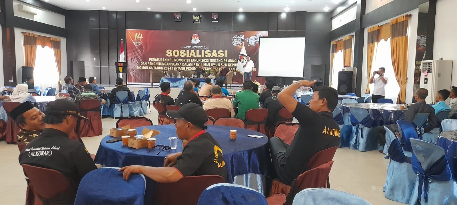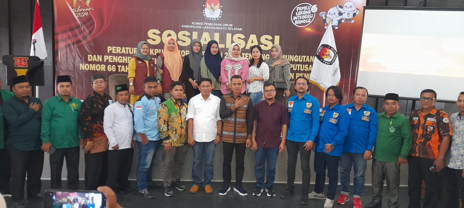 Labuhanbatu Selatan – Komisi Pemilihan Umum (KPU)Daerah Kab.Labuhanbatu selatan menggelar sosialisasi pemungutan dan perhitungan suara peraturan nomor 25 tahun 2023 serta nomor tahun 2024,acara tersebut digelar di convention Blok Songo Desa sisumut Kecamatan Kotapinang Kabupaten Labuhanbatu selatan Sumatera Utara Kamis 8/2-2024.