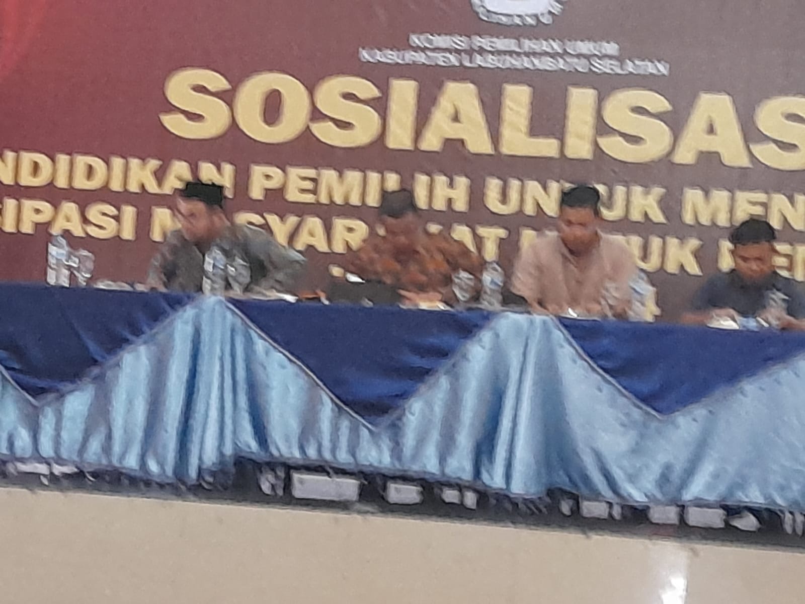 Labusel – KPU Labuhanbatu Selatan mengadakan sosialisasi pendidikan pemilihan untuk meningkatkan partisipasi masyarakat dalam pemilihan umum Tahun 2024 di gedung convention grand suma,Blok Songo Desa Sisumut Kecamatan Kotapinang,Kamis (21/12/23).