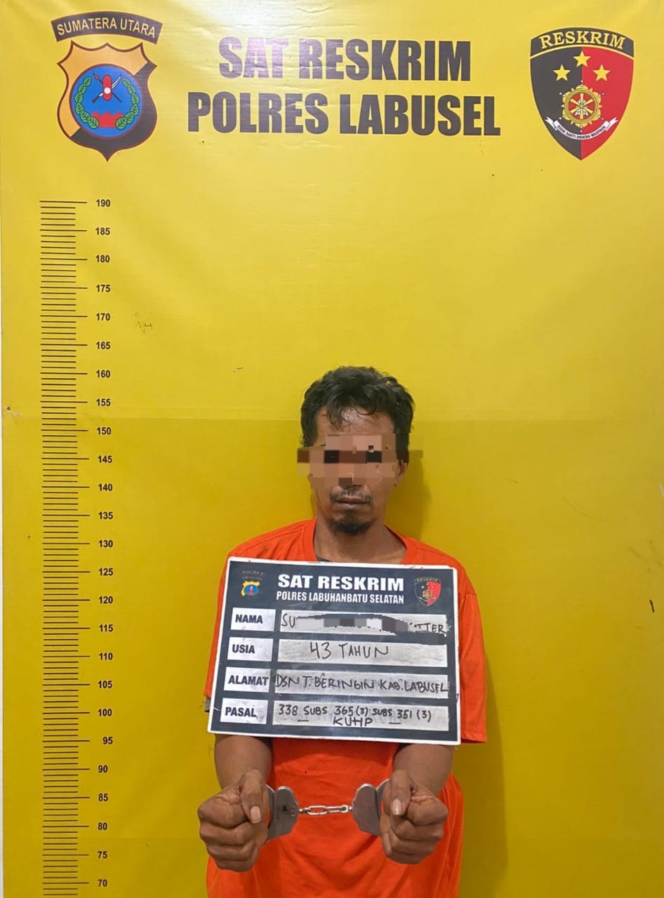 Labuhanbatu Selatan,Tuntasnews.net – Kepolisian Resor Labuhanbatu Selatan (Polres Labusel)berhasil mengungkap kasus pembunuhan disertai pencurian dengan kekerasan yang terjadi di wilayah hukum Polres Labusel dalam waktu kurang dari 24 jam. Pelaku, seorang pria berinisial S alias Scatter (43), berhasil diamankan setelah diketahui menjadi dalang pembunuhan terhadap Anto alias Tomok (59), seorang petani asal Dusun Pernantian, Desa Binanga Dua, Kecamatan Silangkitang, Kabupaten Labuhanbatu Selatan,Sumatera Utara.