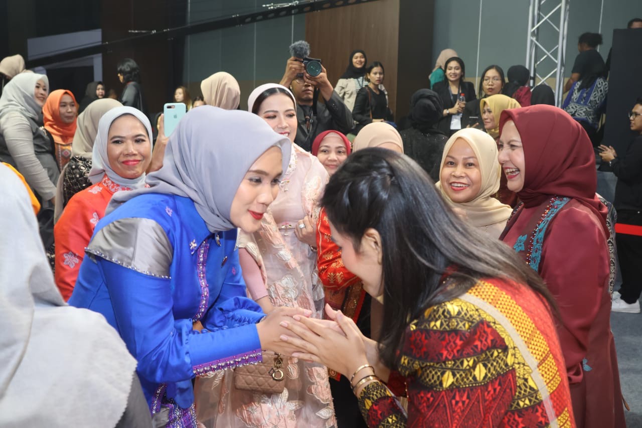 MEDAN – Ketua Dekranasda Tapanuli Selatan, Ny Rosalina Dolly Pasaribu, menghadiri pelaksanaan Medan Fashion Festival (MFF) yang diselenggarakan oleh Dewan Kerajinan Nasional Daerah (Dekranasda) Kota Medan di Hotel Santika Medan, Sabtu (13/7).