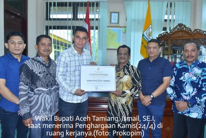 Penghargaan tersebut diserahkan langsung kepada Wakil Bupati Aceh Tamiang, Ismail, SE.I, pada Kamis (24/04/25)) di ruang kerjanya.