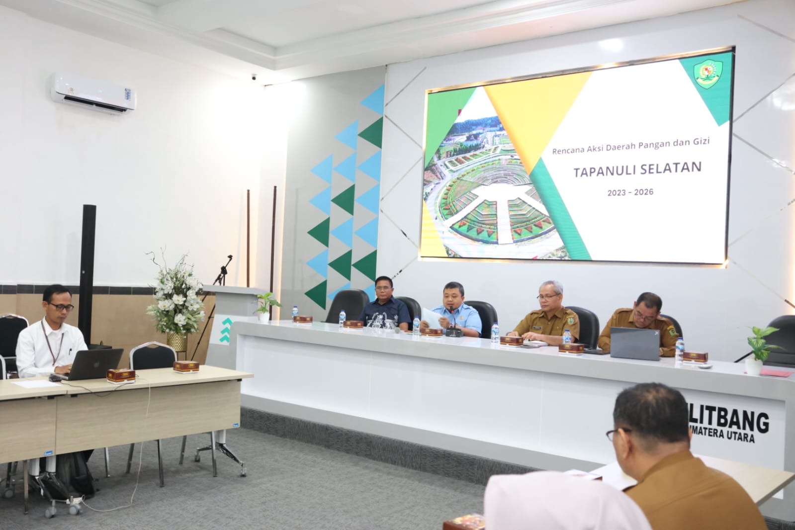 TAPANULI SELATAN – Bupati Tapanuli Selatan (Tapsel) Dolly Pasaribu mengikuti pembahasan rancangan akhir rencana aksi daerah pangan dan gizi (RAD-PG) Kabupaten Tapanuli Selatan Tahun 2023-2026 di ruang rapat Hadibroto Bappelitbang Provsu, Medan, Selasa (5/3).