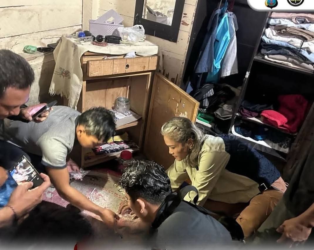 Namun melihat kedatangan polisi pelaku mencoba melarikan diri dari pintu samping rumah tersebut. Namun berhasil diringkus polisi.
