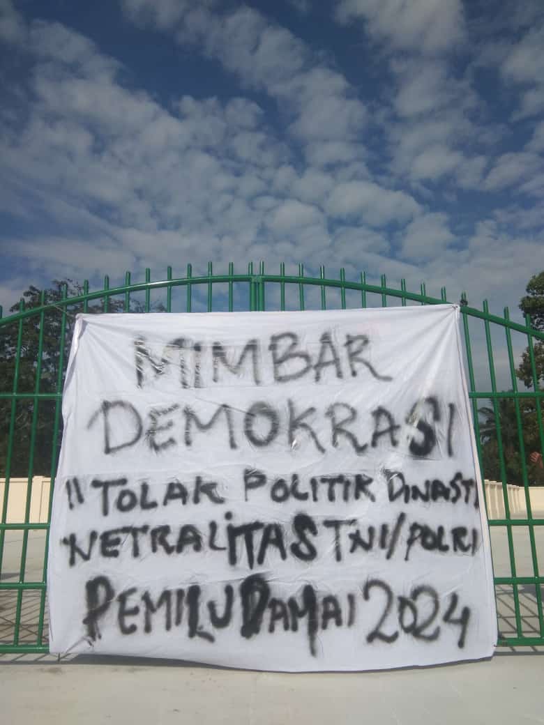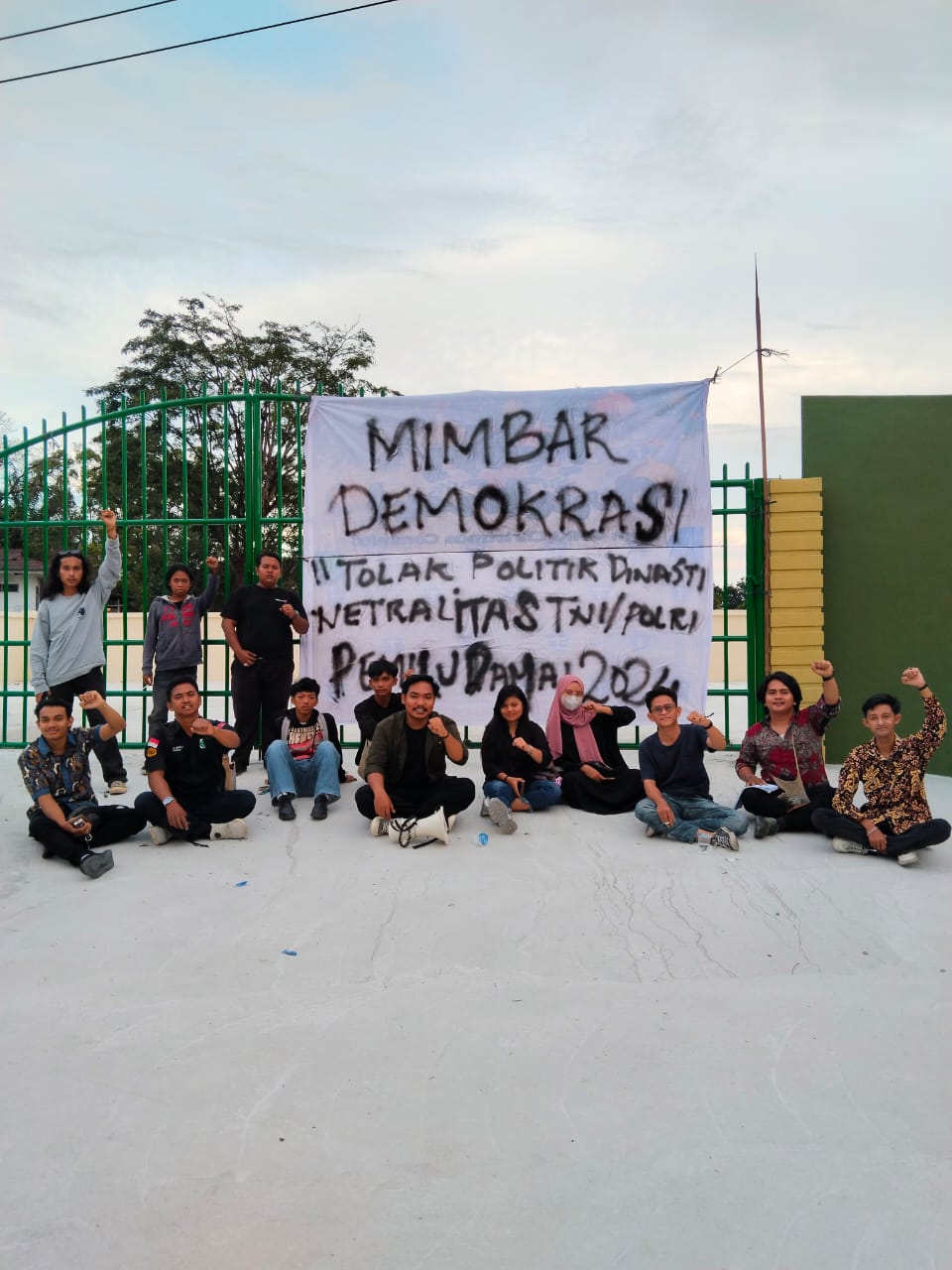 Disampaikan Pimpinan Aksi: ” Adapun Grand Isu yang telah kita sepakati ialah ” Evaluasi Pemilu 2019 untuk mewujudkan Pemilu Damai 2024″ dengan beberapa turunan isu ialah;
