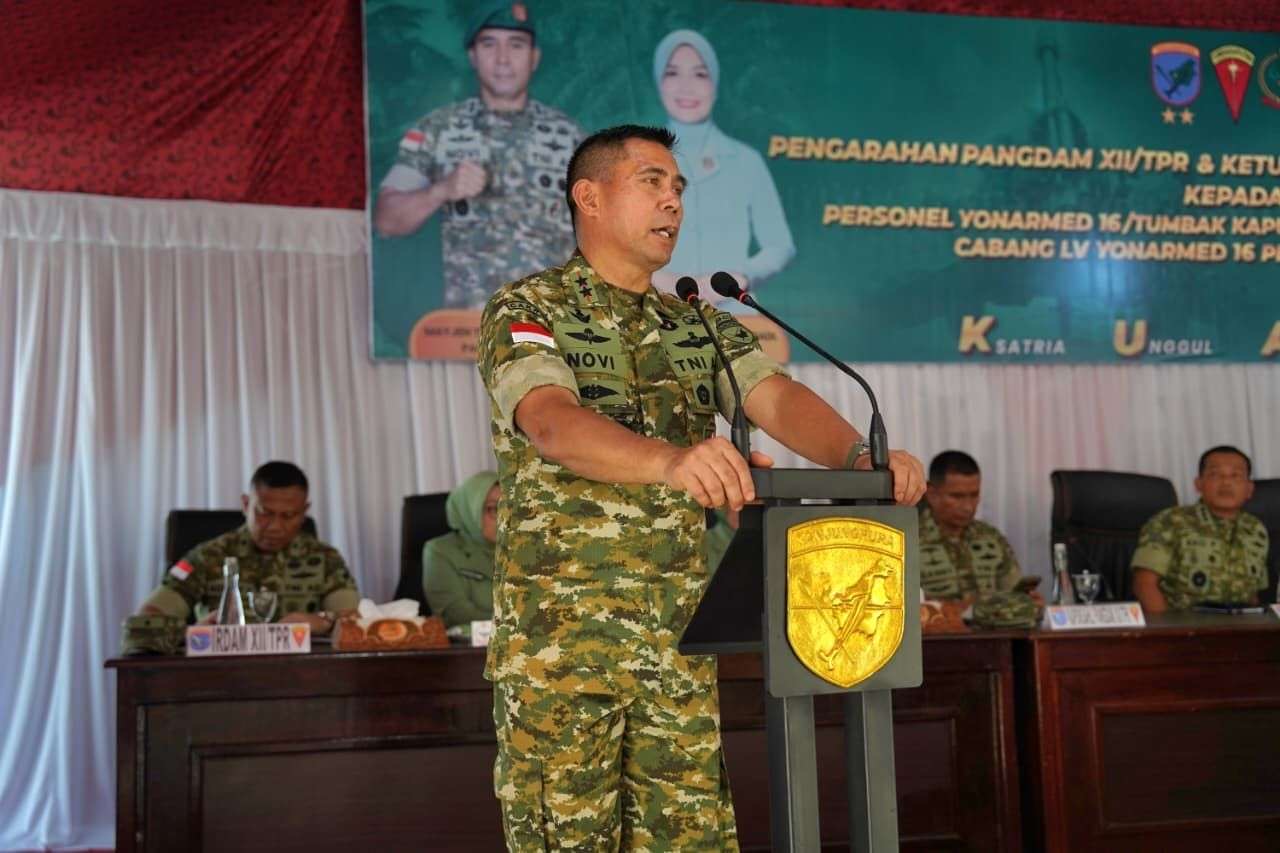 Landak,Kalbar , TuntasNews.Net – Panglima Kodam XII/Tanjungpura, Mayjen TNI Novi Rubadi Sugito, S.I.P., M.Si., melaksanakan kunjungan kerja perdana ke Markas Batalyon Artileri Medan (Yonarmed) 16/Tumbak Kaputing, Kabupaten Landak, pada Selasa (28/4/2026). Kunjungan ini bertujuan untuk memastikan kesiapan tempur satuan dan moril prajurit di garda terdepan wilayah Kalimantan Barat.