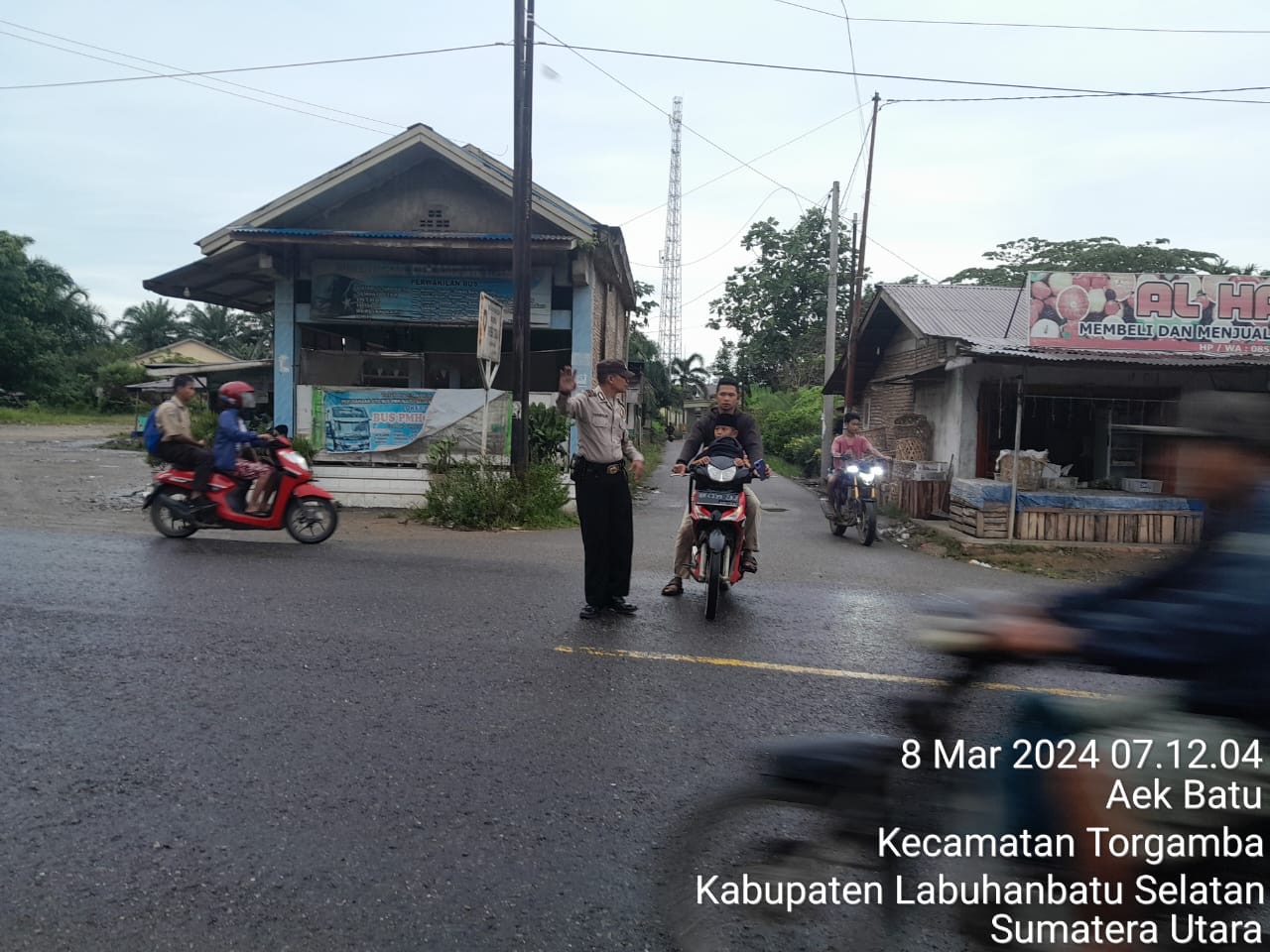 Labuhanbatu Selatan – Personel Polsek Torgamba Polres Labusel kembali melaksanakan tugas pengaturan lalu lintas pagi ini sebagai upaya untuk meningkatkan keselamatan dalam berlalu lintas. Lokasi strong point pagi ini mencakup sejumlah titik strategis di wilayah Jalinsum Simpang Sekolah Yayasan Budaya Cikampak/Desa Aek Batu Kecamatan Torgamba Kabupaten Labusel dan sekitarnya.