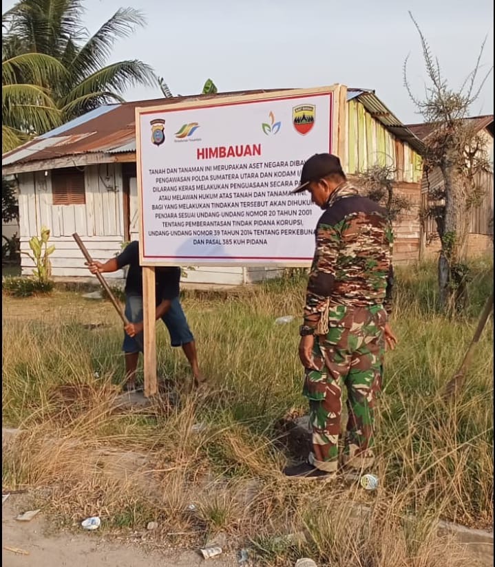 Tampak dalam foto seorang petugas dari PTPN1 Sumut 1 dan didampingi TNI guna memasang papan himbauan. Dan terlihat di lokasi tersebut Wiro tak mampu berbuat apa-apa. Hanya bisa memandangi papan himbauan tersebut berdiri.