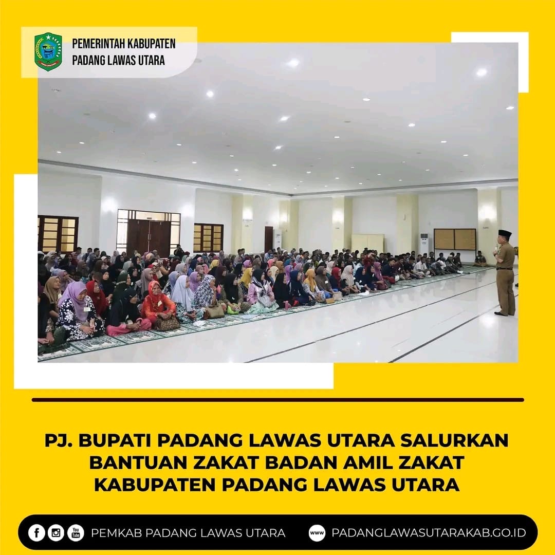 Gunung Tua – Penjabat (Pj) Bupati Padang Lawas Utara Patuan Rahmat Syukur Parlaungan Hasibuan, S.STP., MM., menyalurkan bantuan zakat yang bersumber dari Zakat ASN Pemerintah Kabupaten Padang Lawas Utara kepada masyarakat Kabupaten Padang Lawas Utara yang diselenggarakan oleh Baznas Kabupaten Padang Lawas Utara di Aula Masjid Raya Gunungtua, Selasa (30/07/2024).