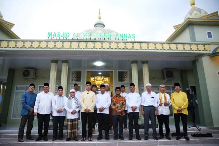 Musa Rajekshah dalam sambutannya merasa bahagia atas selesai pembangun Masjid Al-Musannif Annas yang merupakan Masjid ke-45 dari pembangunan 99 Masjid ke depannya.