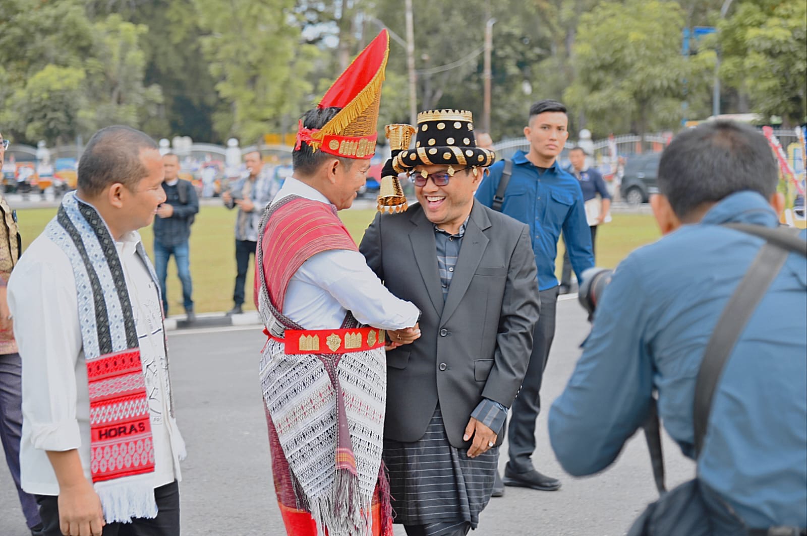 Ada yang unik dari Musyawarah Perencanaan Pembangunan (Musrenbang) Rencana Kerja Pemerintah Daerah (RKPD) 2025 Sumatera Utara (Sumut). Untuk menuju lokasi Musrenbang di Hotel Santika Dyandra Medan, Penjabat (Pj) Walikota Padangsidimpuan Dr. H. Letnan Dalimunthe, S.K.M, M.Kes mengenakan pakaian adat Angkola dan Pj. Gubernur Sumut Hassanudin mengenakan baju adat Toba, naik becak bersama para bupati/walikota se-Sumut.