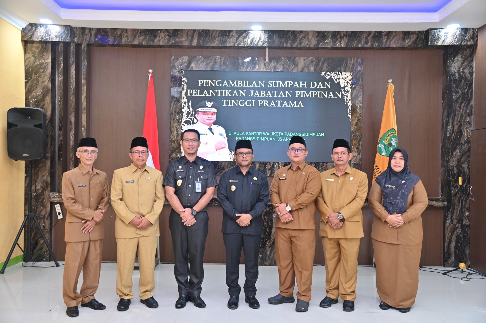 Padangsidimpuan – Penjabat (Pj) Walikota Padangsidimpuan melantik lima Pejabat Tinggi Pratama (Eselon II) di lingkungan Pemerintah Kota (Pemko) Padangsidimpuan di aula kantor Walikota, Jumat (5/4/2024).