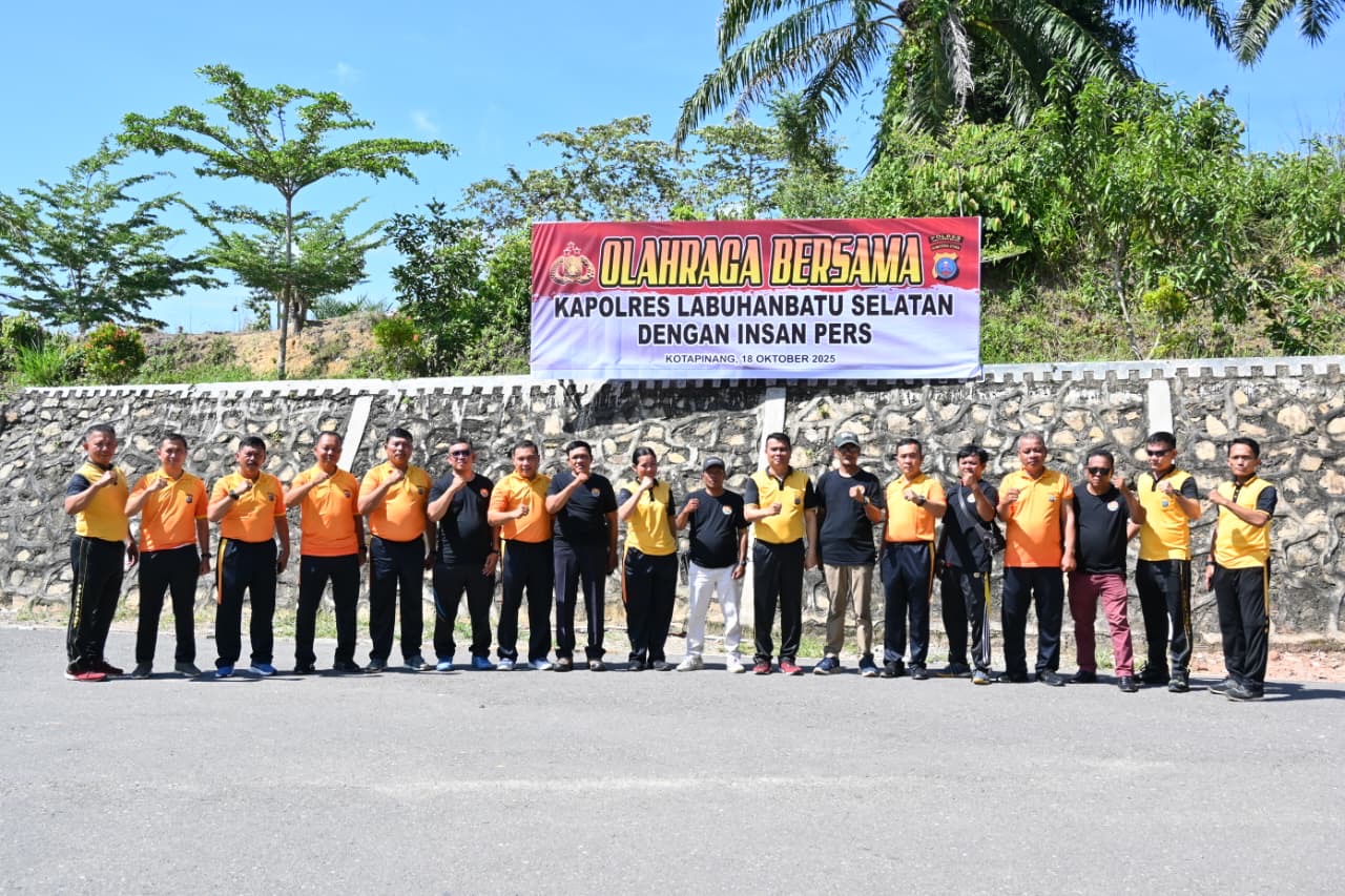 Labuhanbatu Selatan,Tuntasnews.net – Dalam rangka mempererat silaturahmi dan sinergitas antara Kepolisian dengan rekan-rekan media, Polres Labuhanbatu Selatan menggelar kegiatan Olahraga Bersama Kapolres Labuhanbatu Selatan dengan Insan Pers yang berlangsung di Lapangan Apel Mapolres Labuhanbatu Selatan, Jalan Sosopan, SumateraUtara, pada Sabtu(18/10-2025).pagi pukul 09.00 WIB.