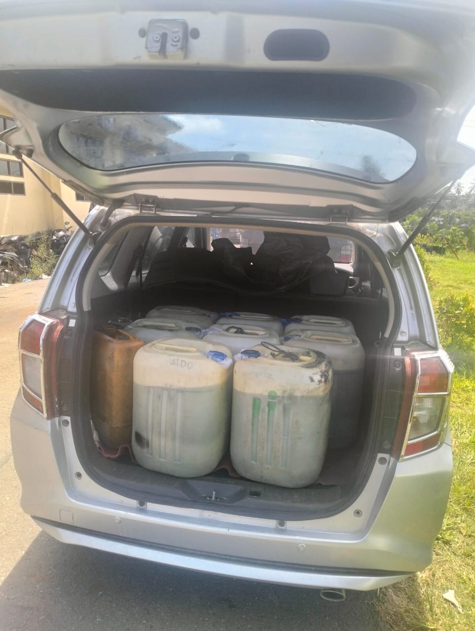 Dari hasil pemetaan dan informasi di lapangan, petugas mencurigai sebuah mobil Sigra berwarna silver yang melintas di sekitar jalan perkebunan Normarak, dekat Masjid Desa Mampang. Setelah dihentikan dan diperiksa, ditemukan sembilan jerigen berisi bahan bakar jenis Pertalite, masing-masing berkapasitas sekitar 30 liter.