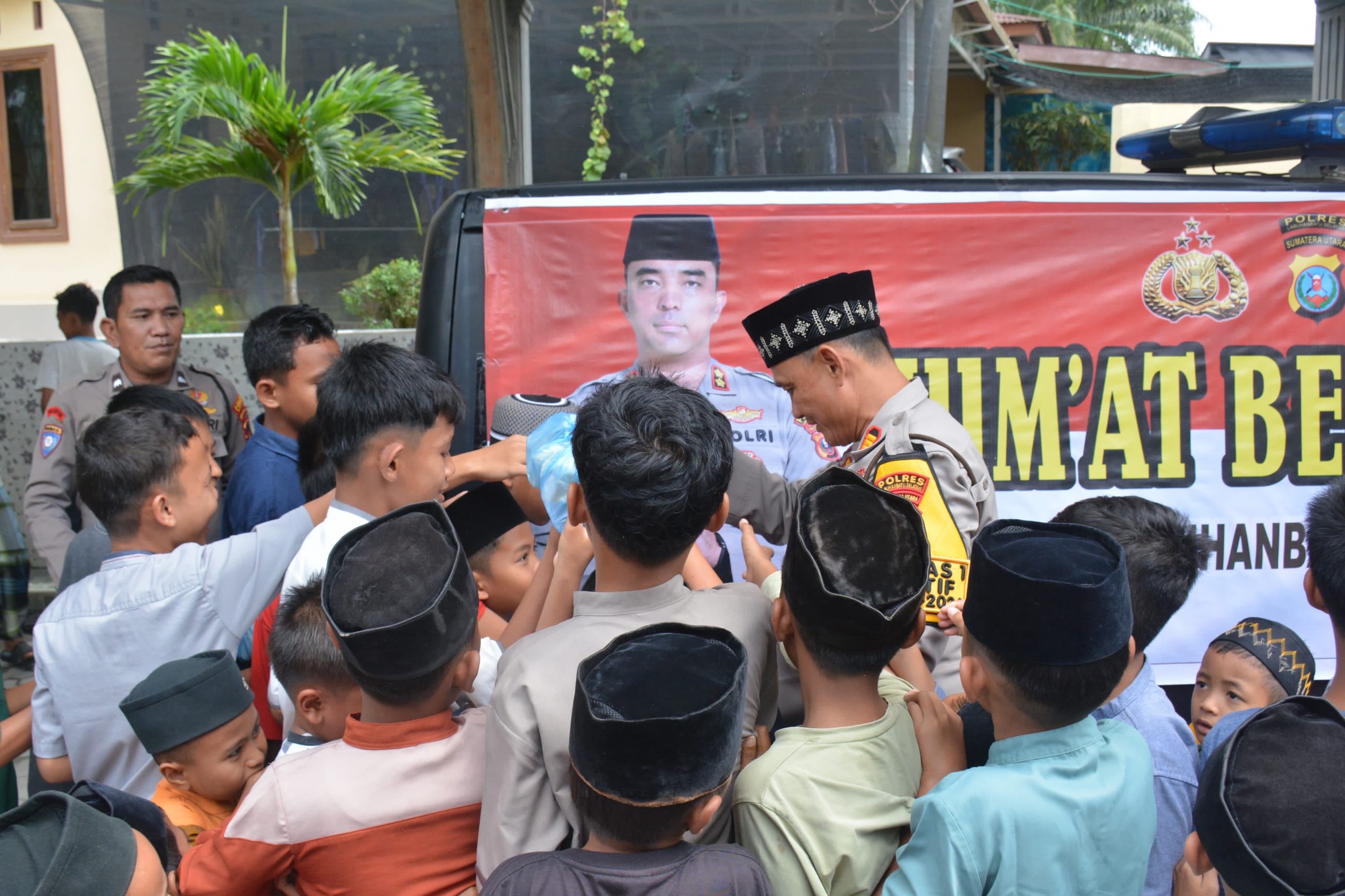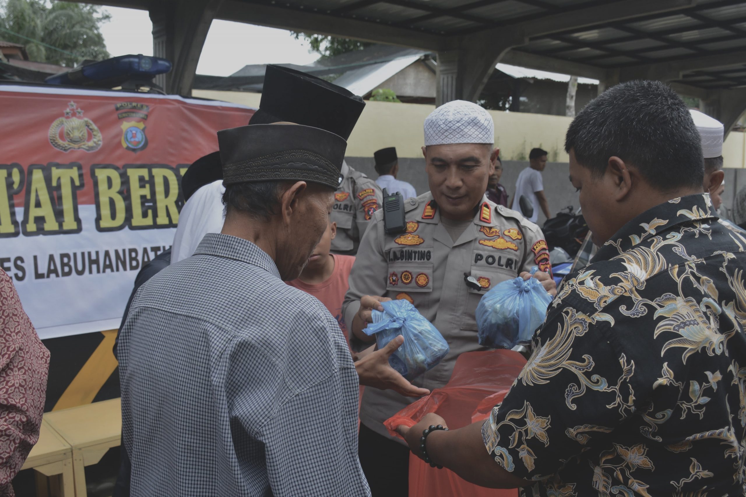 Labuhanbatu Selatan,Tuntasnews – Polres Labuhanbatu Selatan melaksanakan kegiatan sosial bertajuk “Jumat Berkah” di Masjid Jami’ Nurul Iman, Dusun Lohsari 1, Desa Kampung Perlabian, Kecamatan Kampung Rakyat, Jumat (17/1/2025).
