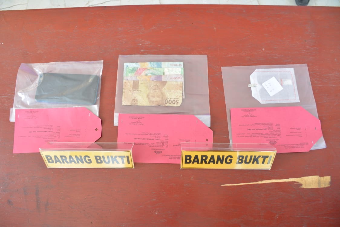 Dan ketika team melakukan penggeledahan, ditemukan dari hadapannya 1 buah plastik klip transparan yang diduga berisi narkotika jenis sabu, ditangan kirinya 1 unit handphone Samsung warna biru dan dari kantong saku celana sebelah kanan uang sebesar Rp.85.000,-“.sambung AKBP Maringan.
