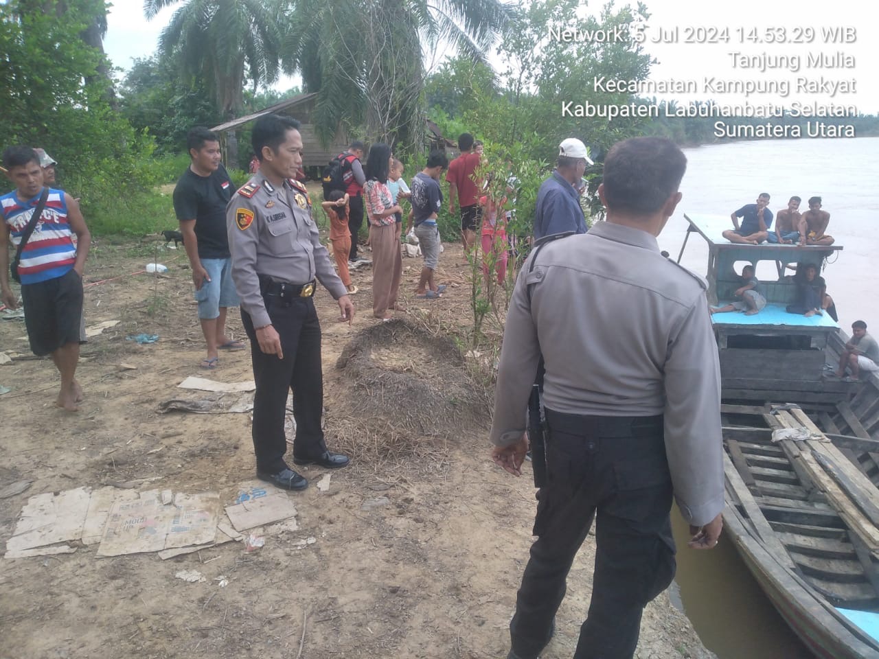 Labuhanbatu Selatan,Tuntasnesw – Personel Polsek Kampung Rakyat Polres Labuhanbatu Selatan yang dipimpin Wakapolsek Kampung Rakyat IPTU Khairul Azhar Siregar, S.H., dan 9 personel bersama Tim Gabungan 2 orang personel Koramil 10/Tanjung Medan, 7 orang BPBD Kabupaten Labuhanbatu Selatan yang dipimpin oleh Heri Malau, Kepala Dusun Panjomuran dan masyarakat Dusun Panjomuran melakukan pencarian dua orang yang hanyut dan tenggelam di Sungai Barumun Dusun Panjomuran Desa Tanjung Mulia Kecamatan Kampung Rakyat Kabupaten Labuhanbatu Selatan, Jumat (5/7/2024) sekira pukul 11.00 wib.