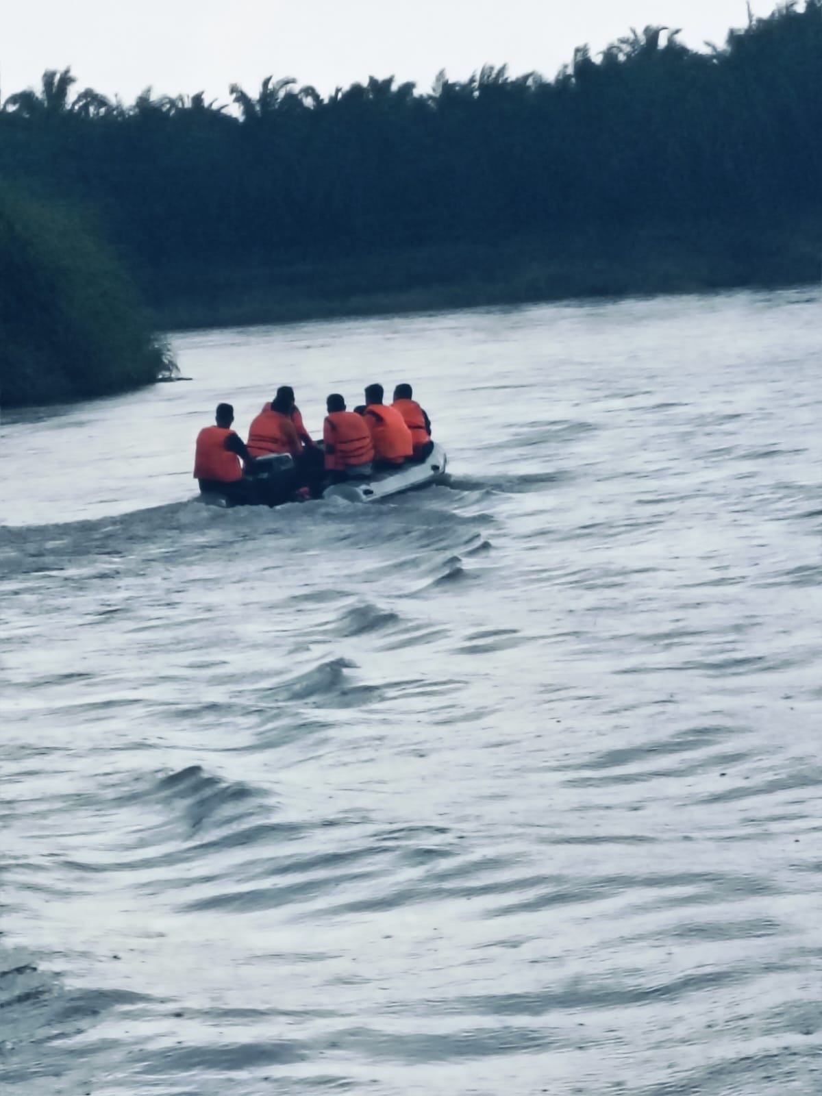 Dari hasil olah TKP ditemukan 1 unit perahu kayu dengan panjang 3 meter yang berjarak sekira 500 meter dari TKP dalam keadaan terbalik, ditemukan 2 buah tas milik korban yang tersangkut dipohon bambu yang menjuntai ke sungai.