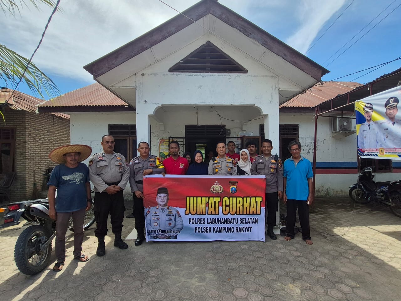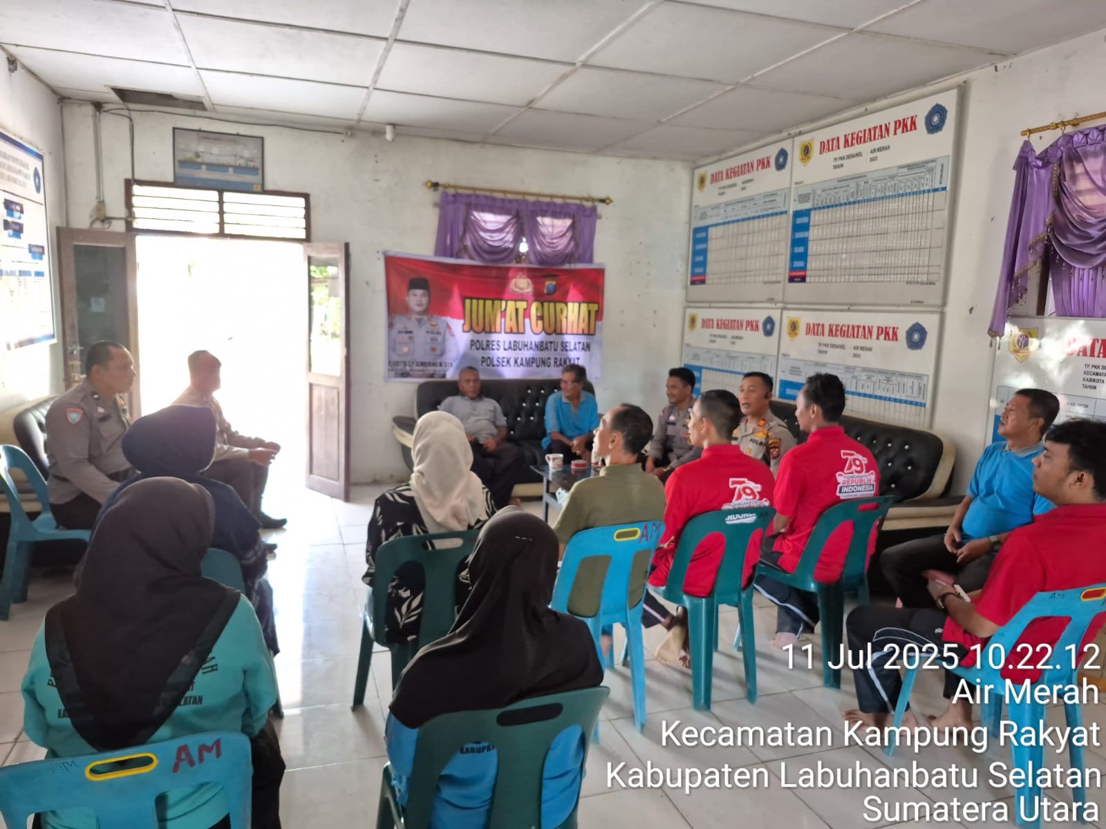Labuhanbatu Selatan,Tuntasnews.net – Polsek Kampung Rakyat, Polres Labuhanbatu Selatan kembali menggelar kegiatan *”Jum’at Curhat”* sebagai bentuk upaya pendekatan dan komunikasi langsung antara pihak kepolisian dengan masyarakat. Kegiatan ini dilaksanakan pada hari Jumat (11/7/2025), sekira pukul 10.00 WIB di Kantor Desa Air Merah, Kecamatan Kampung Rakyat, Kabupaten Labuhanbatu Selatan.
