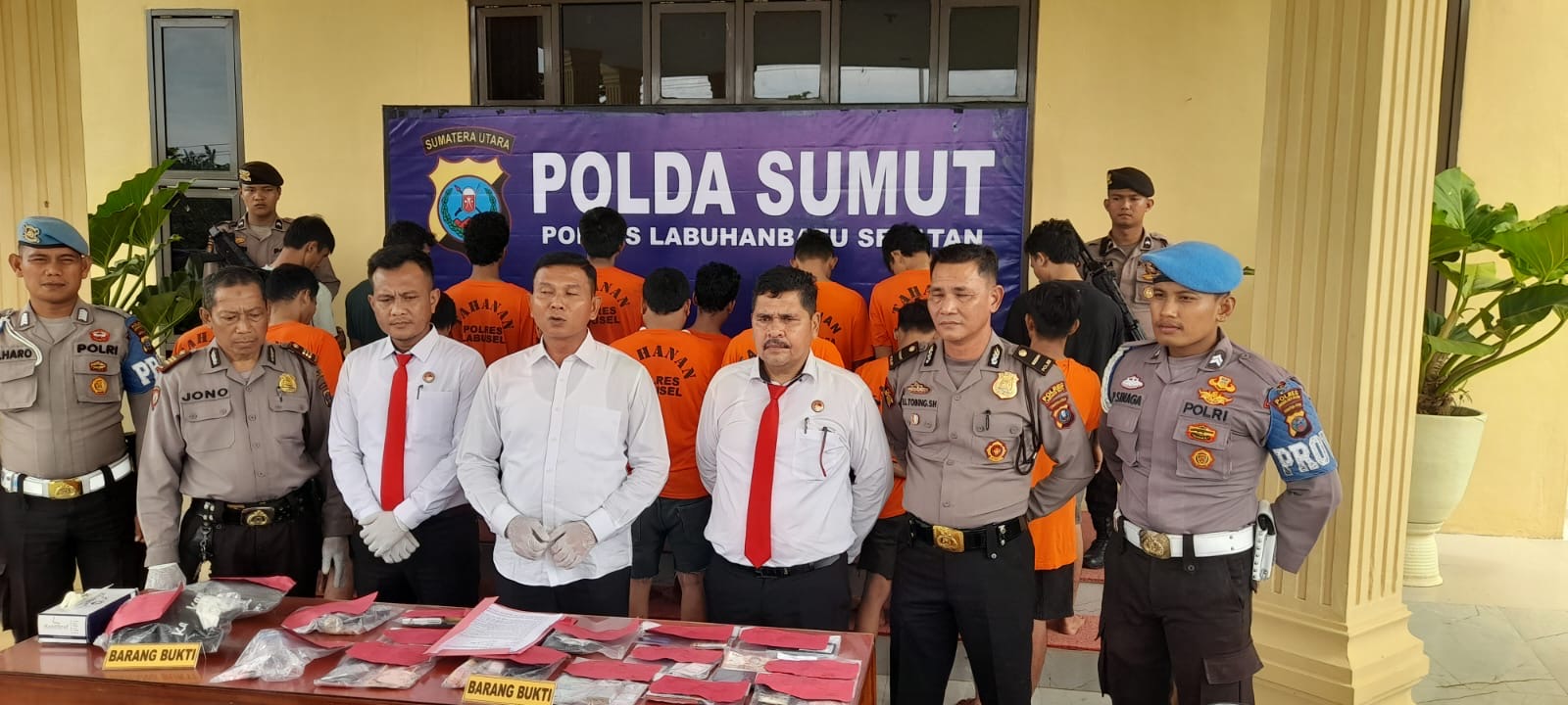 “Untuk para tersangka kita amankan dari beberapa lokasi yang berbeda di wilayah Hukum Polres Labuhanbatu Selatan dan merupakan jaringan peredaran narkoba diwilayah hukum Polres Labuhanbatu Selatan serta hasil ungkap kasus ini berkat kerjasama Satresnarkoba Polres Labuhanbatu Selatan dengan Polsek Jajaran.