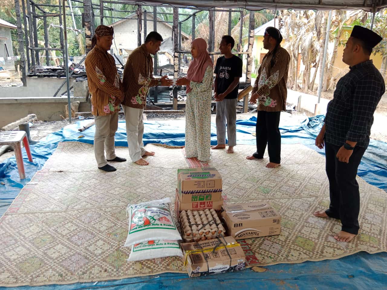 “Adanya dukungan dari berbagai pihak melalui open donasi ini dari hasil tersebut diserahkan kepada korban musibah kebakaran, bertujuan dapat meringankan beban saudara kita yang saat ini mendapat cobaan dari Allah SWT. Bentuk bahan yang diberikan berupa sembako kebutuhan pokok meliputi Beras, Mie Instan, Minyak goreng, Telur, gula dan uang tunai”, ujarnya.