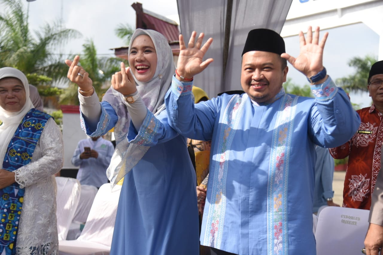 Bupati Tapsel Dolly Pasaribu dan Ketua TP PKK Ny. Rosalina Dolly Pasaribu tampak menikmati lantunan merdu drum band yang ditampilkan, dan menyambut peserta pawai dengan senyuman khasnya yang hangat.