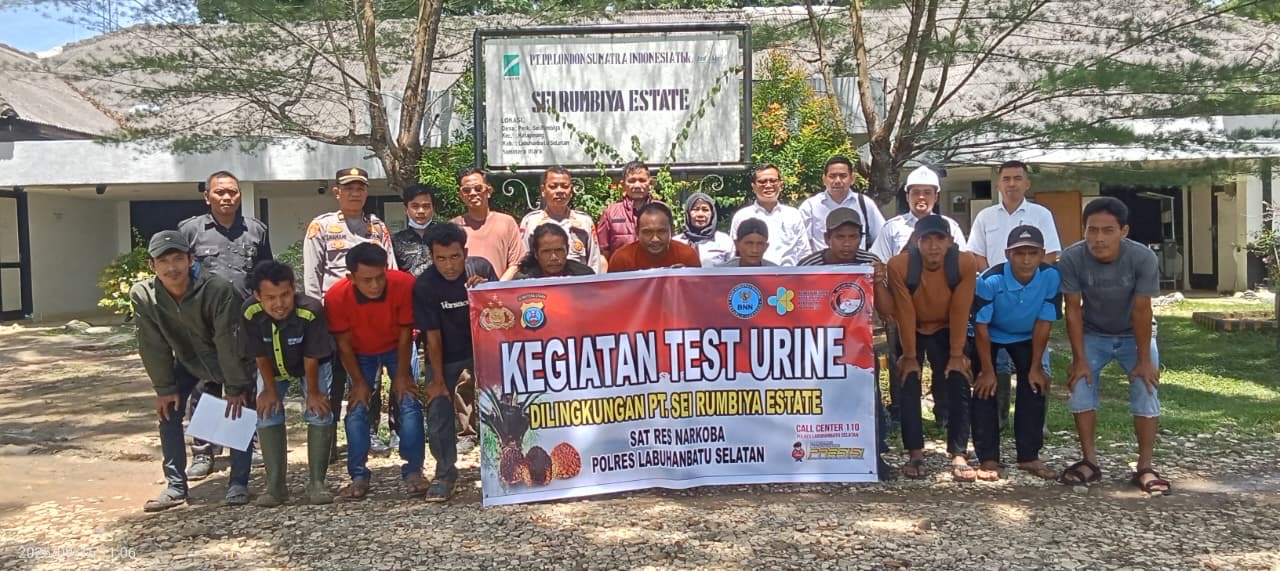 Labuhanbatu Selatan – Satuan Reserse Narkoba (Satresnarkoba) Polres Labuhanbatu Selatan melaksanakan kegiatan tes urine terhadap karyawan PT Rumbiya Estate, Senin (15/09/2025) sekitar pukul 10.00 WIB, bertempat di Aula PT Rumbiya Estate, Kabupaten Labuhanbatu Selatan.