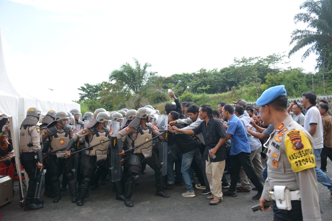 Setelah arahan yang diberikan Kapolres Labuhanbatu Selatan, Komisioner KPU Labuhanbatu Selatan dan Bawaslu Kabupaten Labuhanbatu Selatan, acara dilanjutkan dengan simulasi Pemungutan suara dan terjadi adanya keributan yang dilakukan sekelompok masyarakat sehingga pihak Kepolisian menurunkan tim Dalmas Pengamanan Polres Labuhanbatu Selatan.