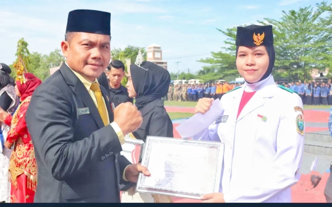 Piagam penghargaan tersebut diserahkan Anggota DPRD Paluta Hasran Harahap, SH.I kepada siswi yang bersangkutan seusai upacara peringatan Hari Sumpah Pemuda ke-97 tahun 2025 dilapangan upacara kantor Bupati Padang Lawas Utara, Selasa 28 Oktober 2025.